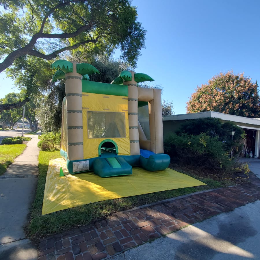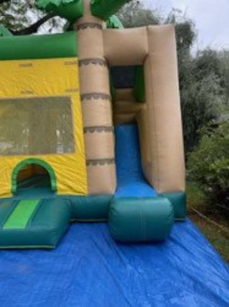 4 in 1 Green tropical combo bounce house.