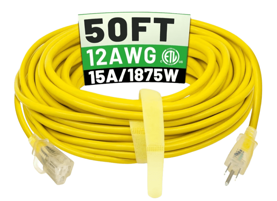50 ft 12/3 Outdoor Extension Cord Waterproof Heavy Duty with Lighted Indicator End 12 Gauge 3 Prong, Flexible Cold-Resistant Long Power Cord Outside